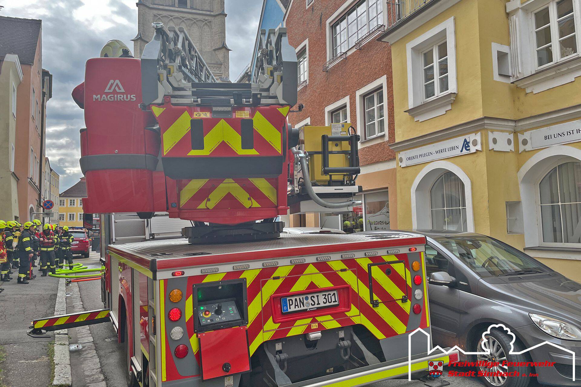 Am Mittwoch gegen 11.45 Uhr wurden wir durch die ILS Passau zu einem überörtlichen Einsatz in die Nachbarstadt Braunau gerufen, da dort ein Zimmerbrand in der dortigen Altstadt gemeldet wurde. Da die Drehleiter der Braunauer Kameraden zum Zeitpunkt der Alarmierung nicht einsatzbereit war, wurde unsere Drehleiter alarmiert. Mit ELW und HLF als Begleitfahrzeuge machten wir uns auf den Weg zum Einsatzort, wo wir mit der Drehleiter die Anleiterbereitschaft übernahmen. Nachdem der Brand gelöscht war und die Anleiterbereitschaft nicht mehr nötig war, konnten wir wieder einrücken.