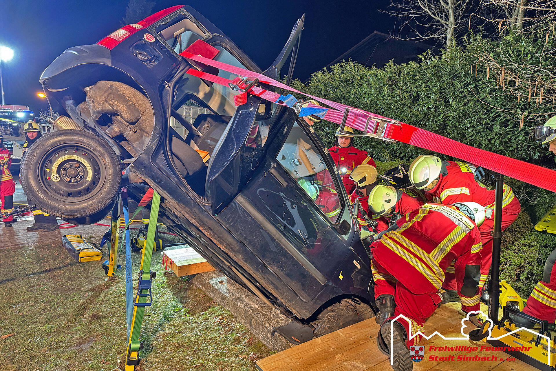 PKW in Schacht gestürzt – Vier Personen an Unfall beteiligt – Herausfordernde Übung für Einsatzkräfte. Ein PKW kommt von der Fahrbahn ab…